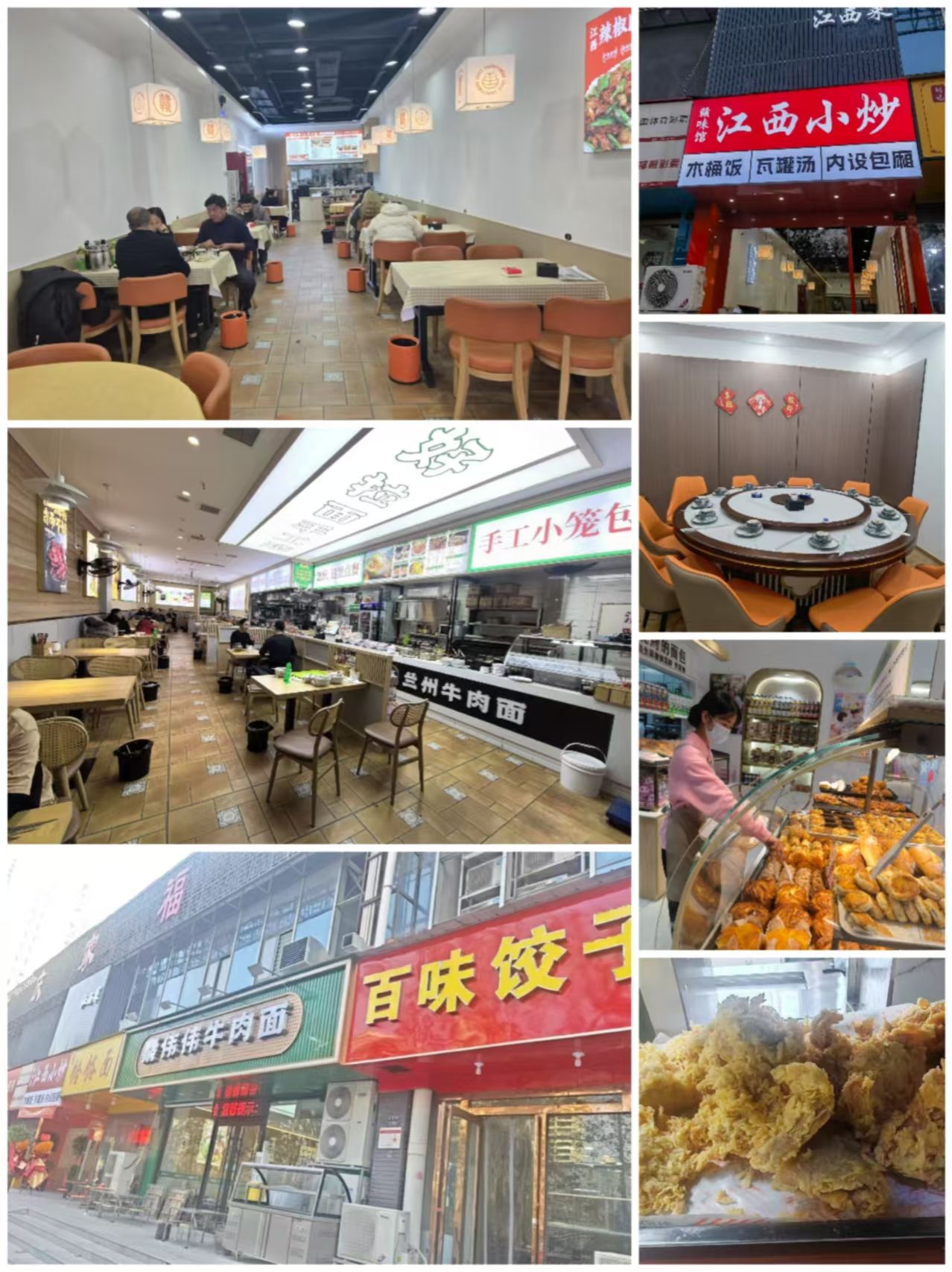 ——风味汇聚满足多样味蕾需求。江西小炒的木桶饭吸饱菜香,瓦罐汤煨足醇厚,内设包间是实惠地道的亲朋小聚之选;秦伟伟拉面的面条劲道弹牙,汤底浓郁绵长;百味饺子的馅料新鲜饱满,面皮薄韧透光;饸饹面的口感扎实筋道,卤汁醇厚入味;福景园面包的酥皮层次分明,奶油清甜不腻;美汁堡的炸鸡酥脆多汁,汉堡松软适口……多样化餐饮选择覆盖不同口味偏好,成为师生课间、居民日常就餐的便捷之选。